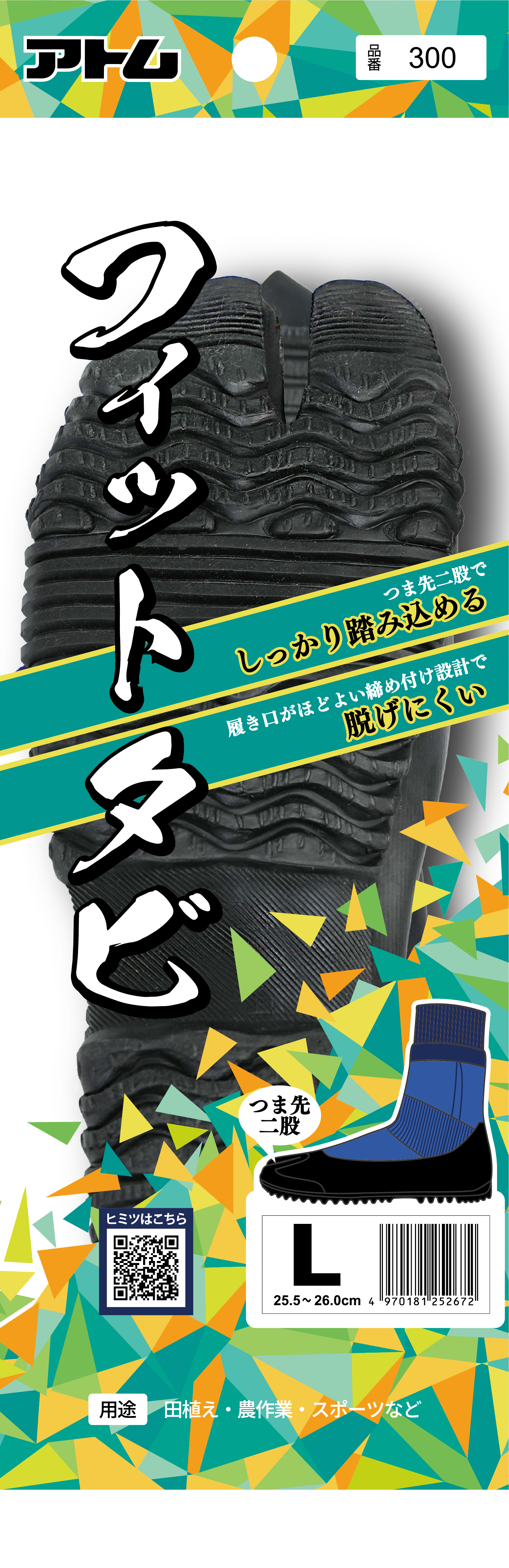●安全に田植え作業を行えるよう、靴下に天然ゴムシートを貼り合わせたタビ靴です。